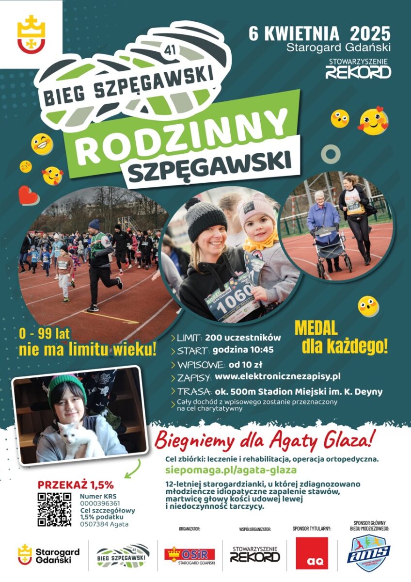 Rodzinny Szpęgawski: to wyjątkowe wydarzenie, organizowane w ramach 41. edycji Biegu Szpęgawskiego z AQ! Niezwykłe, ponieważ ponownie niesie ze sobą szczytny cel – wsparcie leczenia Agatki Glaza, u której zdiagnozowano młodzieńcze idiopatyczne zapalenie stawów.