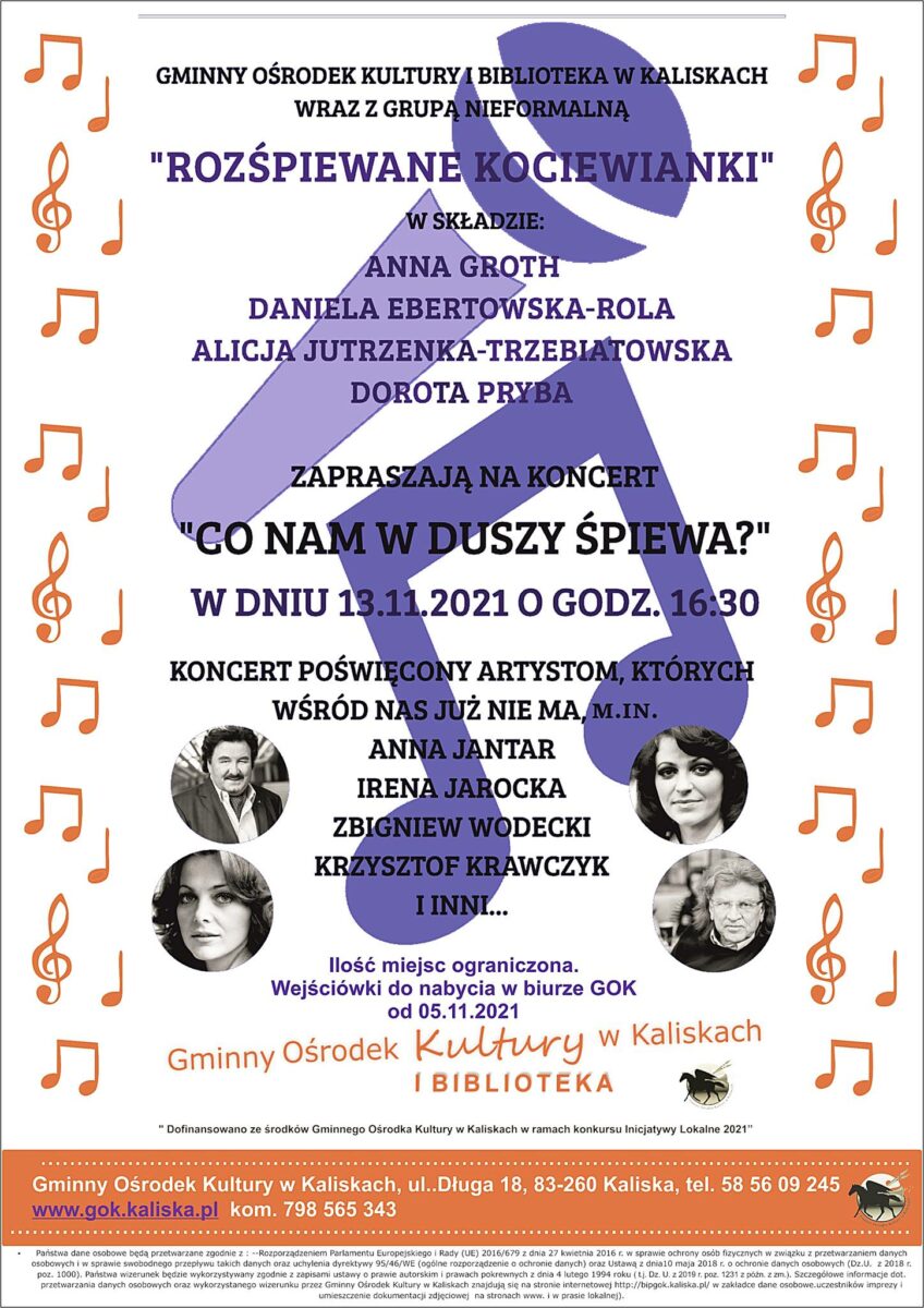 Koncert podsumowujący działania w ramach projektu grupy nieformalnej ROZŚPIEWANE KOCIEWIANKI dofinansowanego ze środków GOK Kaliska – INICJATYWY LOKALNE 2021