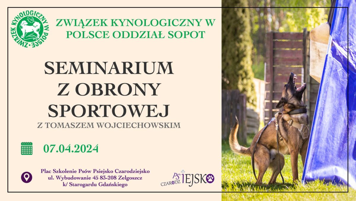 Z przyjemno艣ci膮 informujemy, 偶e Zwi膮zek Kynologiczny w Polsce Oddzia艂 Sopot serdecznie zaprasza cz艂onk贸w Oddzia艂u na jednodniowe seminarium z obrony sportowej! 馃悤馃弳