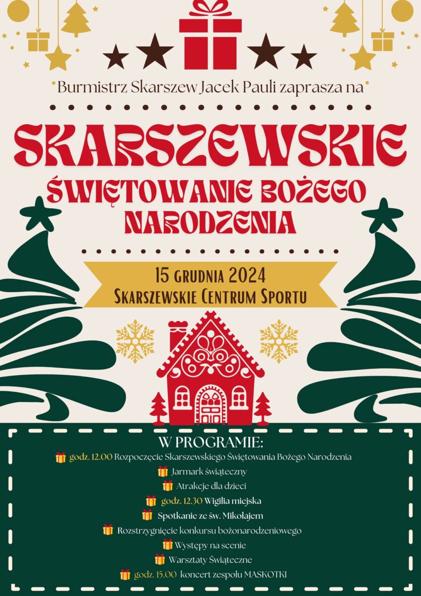 Burmistrz Skarszew, Jacek Pauli, serdecznie zaprasza mieszkańców i gości na wyjątkowe wydarzenie pełne świątecznej magii!