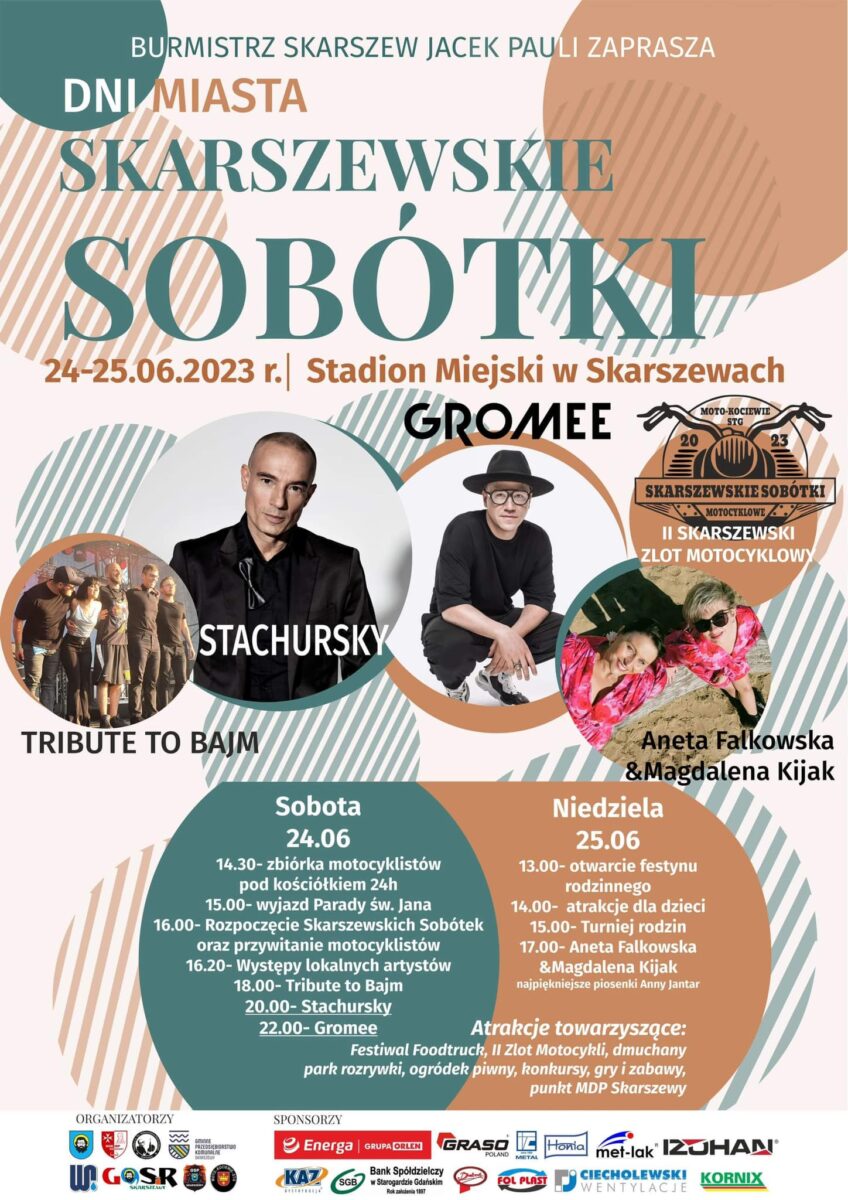 Gminny Ośrodek Kultury i Biblioteka Publiczna w Skarszewach serdecznie zapraszają mieszkańców i nie tylko na sobótki skarszewskie, które odbędą się w dniach 24-25 czerwca 2023 r.