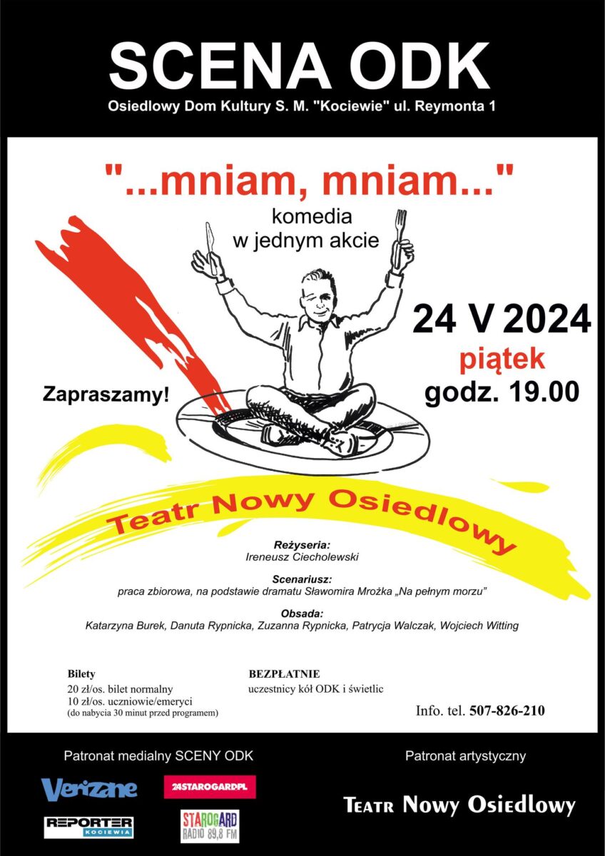 SCENA ODK serdecznie zaprasza na niezwykłą komedię teatralną na podstawie dramatu Sławomira Mrożka – „Mniam, mniam”! To wyjątkowe przedstawienie w wykonaniu Teatru Nowego Osiedlowego z ODK obiecuje wiele śmiechu i refleksji.