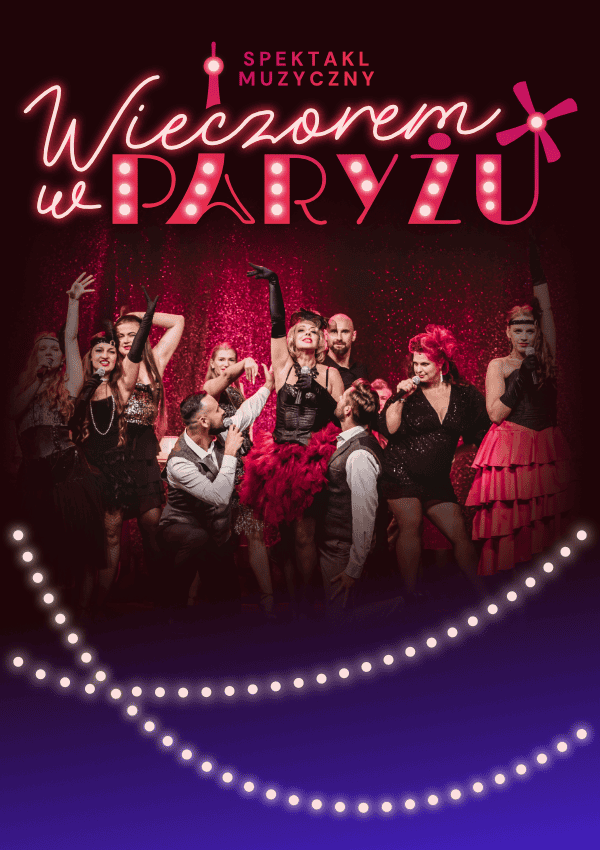 „Wieczorem w Paryżu” to zmysłowy spektakl muzyczny, który przenosi widzów w świat legendarnych kabaretów, nocnych ulic i paryskich tajemnic. To Paryż, który żyje po zmroku – pełen pasji, nostalgii i niegasnących emocji.