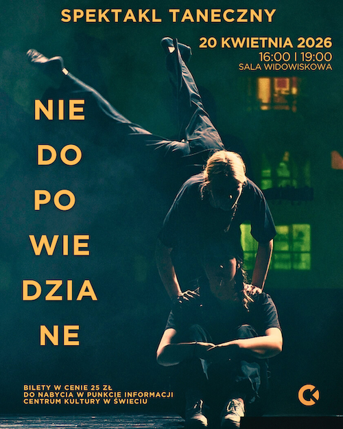📍 Miejsce: sala widowiskowa Centrum Kultury w Świeciu (ul. Wojska Polskiego 139)