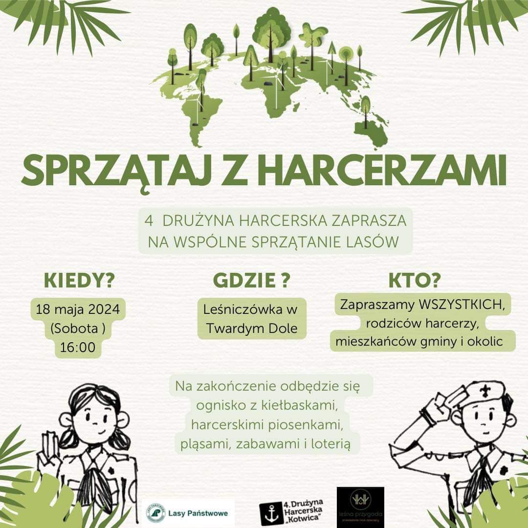 4 Drużyna Harcerska Kotwica serdecznie zaprasza WSZYSTKICH, włącznie z rodzicami harcerzy, mieszkańcami gminy i okolic, na WSPÓLNE SPRZĄTANIE LASÓW! Razem możemy zadbać o nasze piękne lasy. 🌳💚