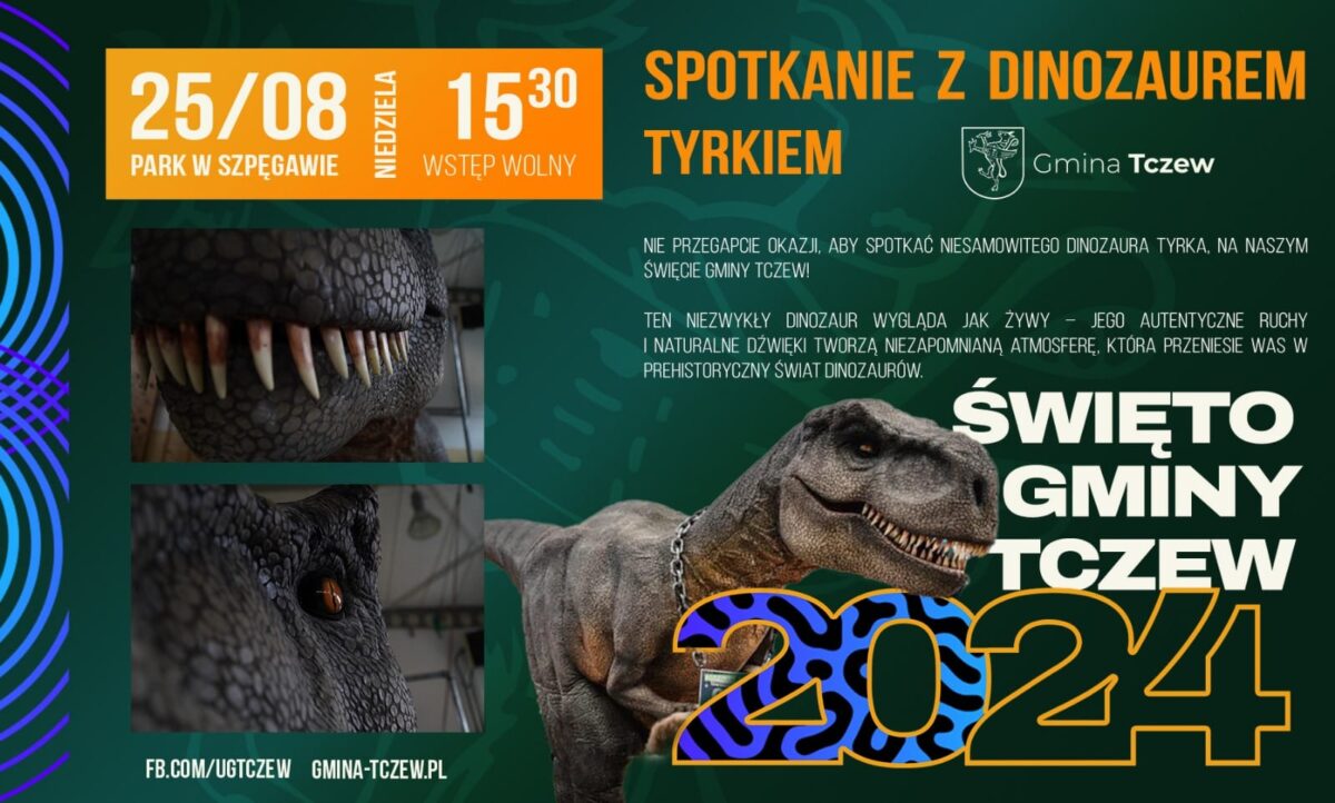 🦖 TYREK 🌍 Realistyczny dinozaur na terenie wydarzenia od godziny 15:30! Spotkanie z nim to prawdziwa podróż do prehistorycznego świata!