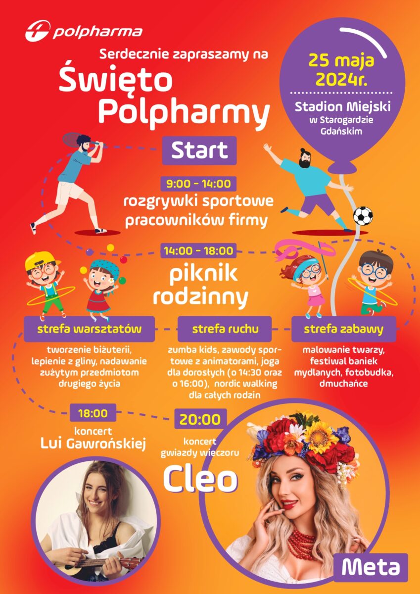 🌟 Zapraszamy na coroczne Święto Polpharmy, które odbędzie się 25 maja na Stadionie Miejskim im. Kazimierza Deyny! To wyjątkowe wydarzenie, otwarte dla wszystkich mieszkańców miasta i regionu, zapewni niezapomniane chwile dla całych rodzin.