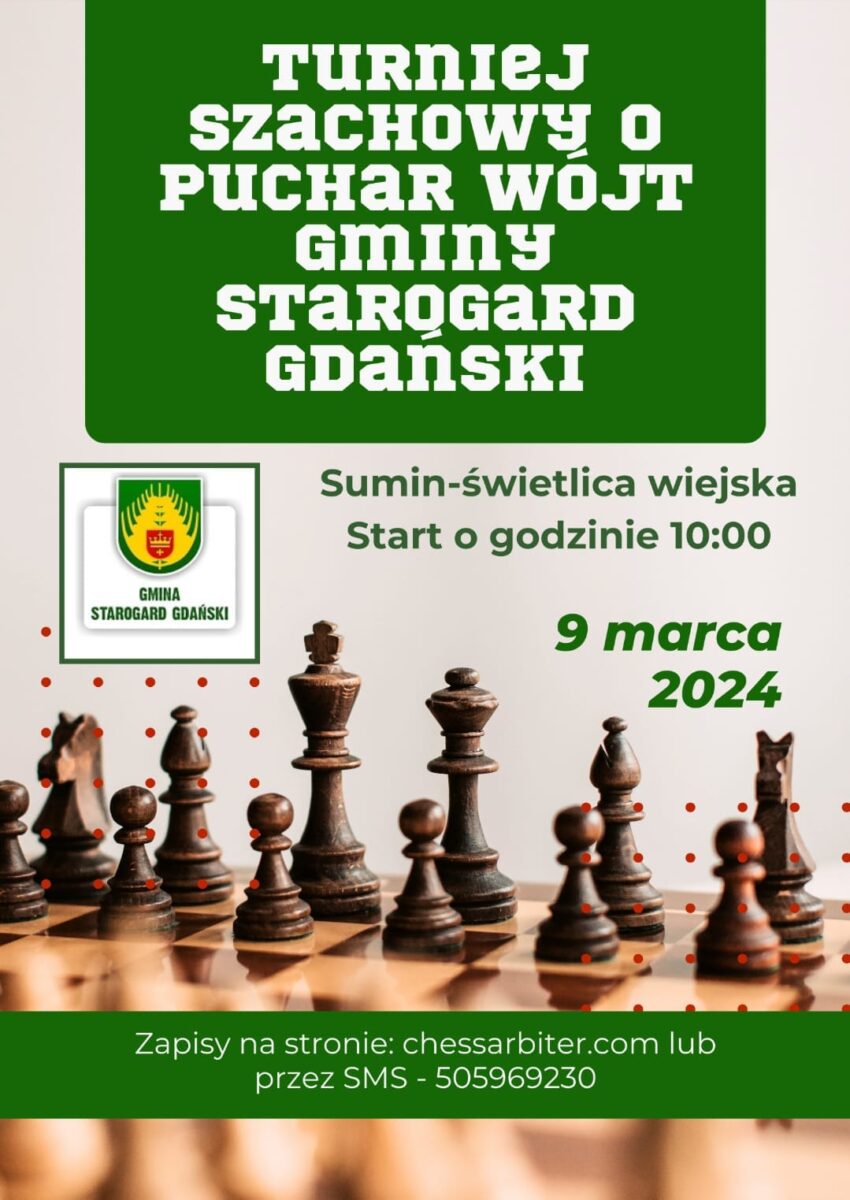 Serdecznie zapraszamy wszystkich pasjonatów szachów na wyjątkowy turniej, który odbędzie się 9 marca o godzinie 10:00 w świetlicy wsi Sumin. To niepowtarzalna okazja, aby zmierzyć się w partii szachowej i zdobyć Puchar Wójta Gminy Starogard Gdański!
