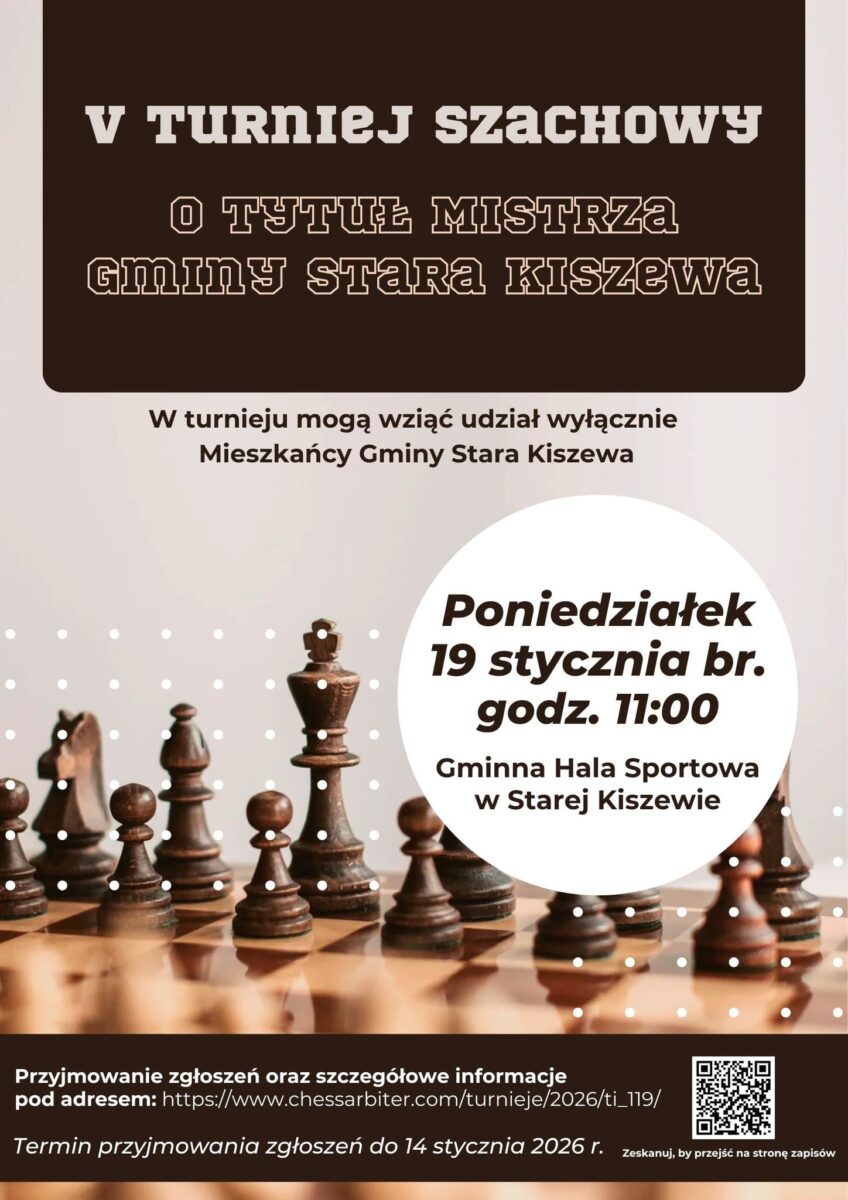 Turniej przeznaczony jest wyłącznie dla mieszkańców Gminy Stara Kiszewa – to lokalna rywalizacja, w której liczy się spryt, strategia i koncentracja! 🧠♞