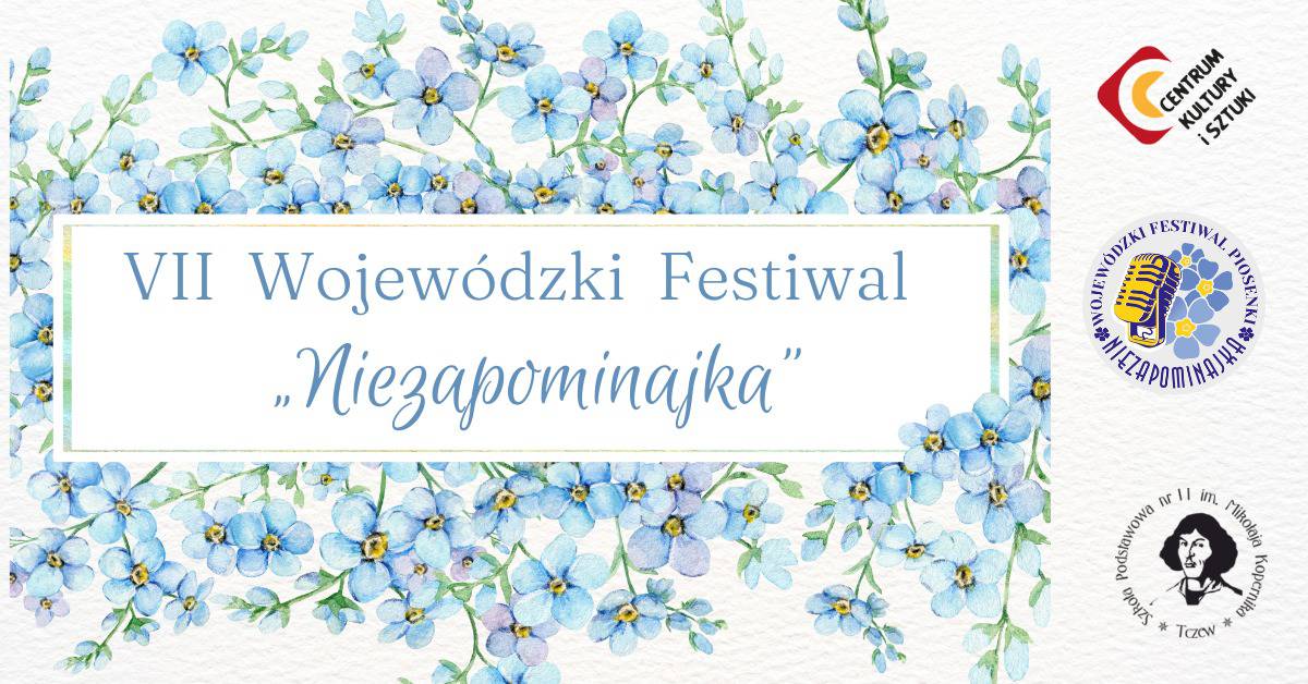 Centrum Kultury i Sztuki w Tczewie oraz Szkoła Podstawowa nr 11 im. M.Kopernika w Tczewie zapraszają na VII Wojewódzki Festiwal “Niezapominajka” – Konkurs piosenki oraz przegląd twórczości artystów polskiej sceny muzycznej, którzy już odeszli – nieżyjących muzyków, aktorów, piosenkarzy, pieśniarzy.