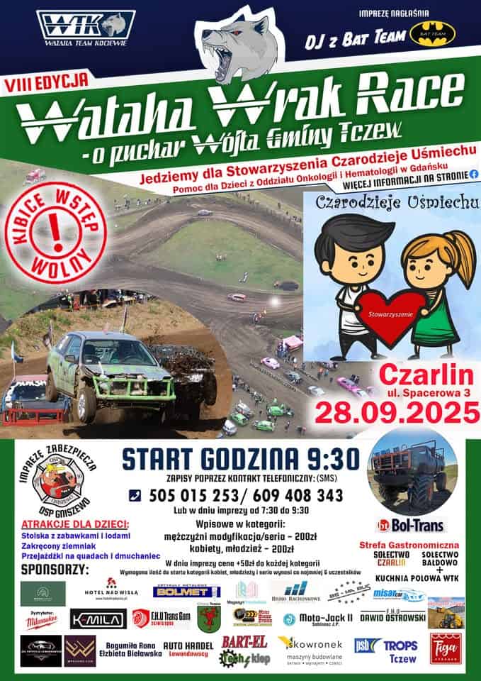 🚗 8. edycja Wataha Wrak Race – o Puchar Wójta Gminy Tczew. Jedziemy dla Stowarzyszenia Czarodzieje Uśmiechu