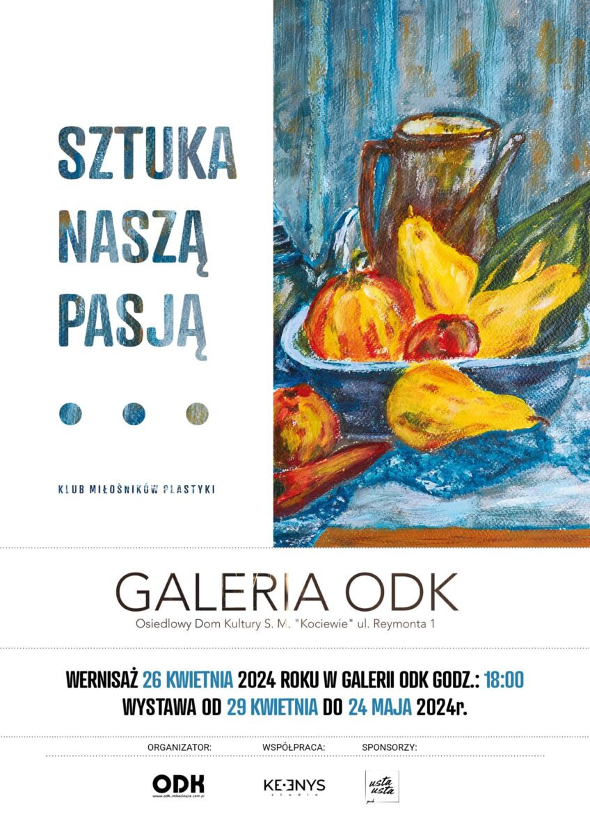 Serdecznie zapraszamy na wernisaż zbiorowej wystawy malarstwa pt. “Sztuka naszą pasją”, organizowany przez OSIEDLOWY DOM KULTURY & KLUB MIŁOŚNIKÓW PLASTYKI oraz PRZYJACIELE GALERII ODK