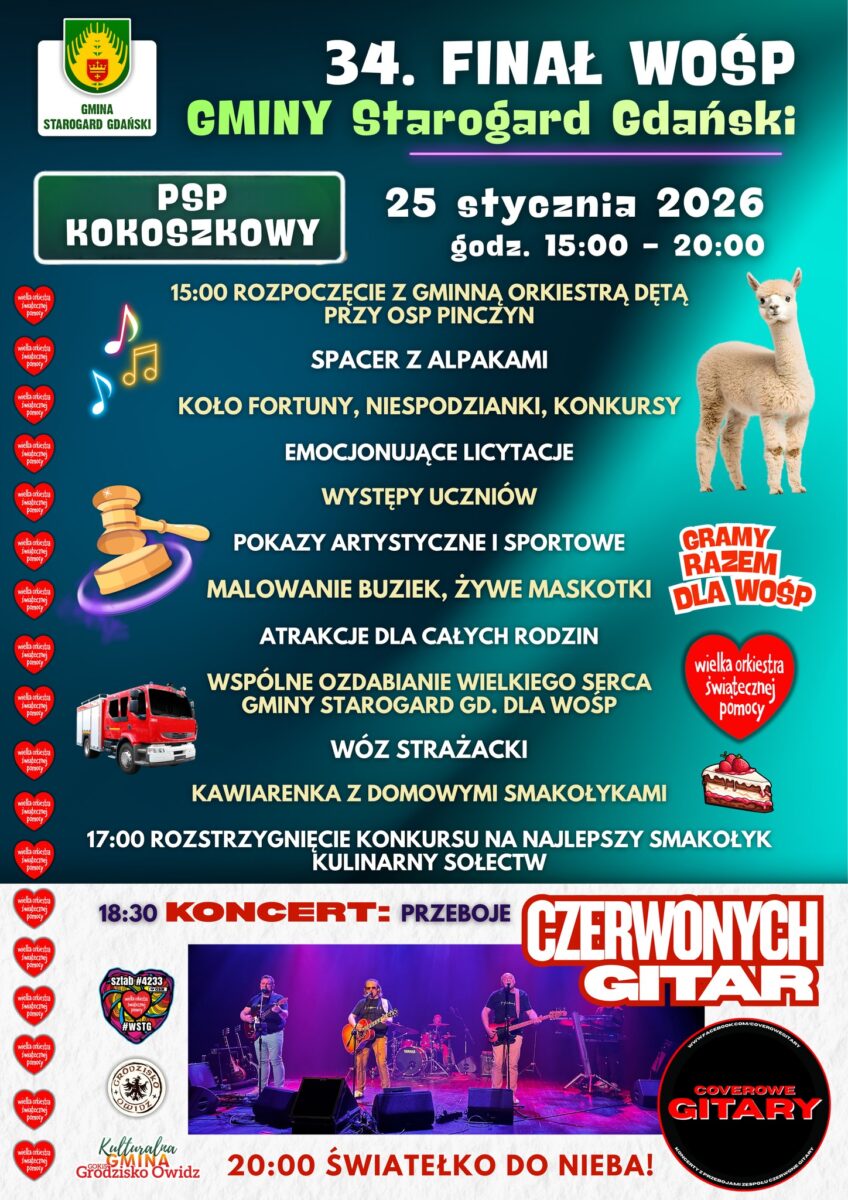 Już 25 stycznia spotykamy się w Kokoszkowach, by razem zagrać z Wielką Orkiestrą Świątecznej Pomocy. Przed nami dzień pełen emocji, dobrej energii, występów i wspólnego pomagania.