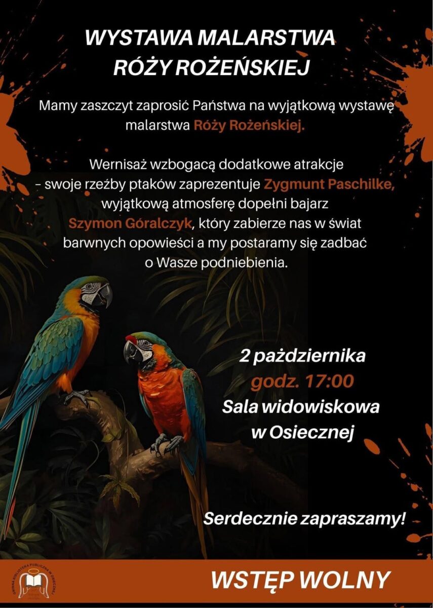Już 2 października o godz. 17:00 w Sali widowiskowej w Osiecznej odbędzie się wystawa malarstwa Róży Rożeńskiej. 🖼️