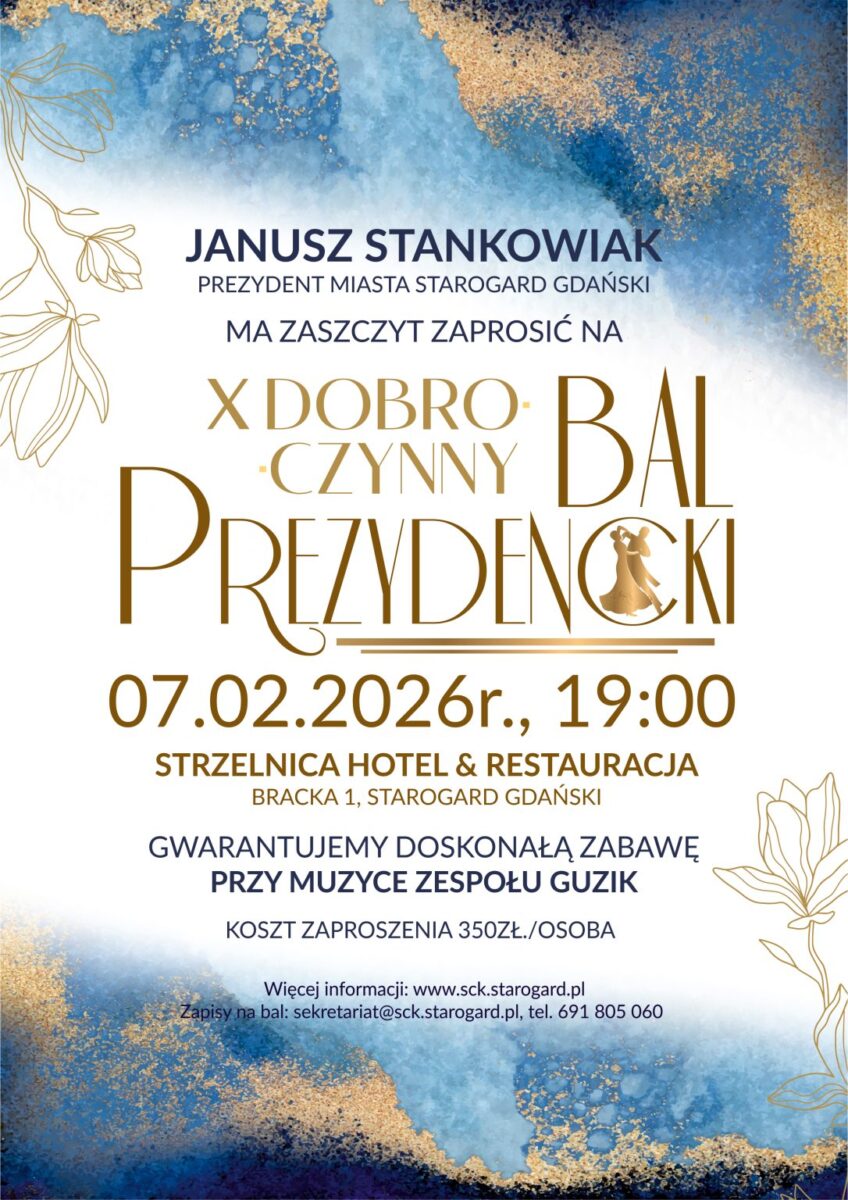 Prezydent Miasta Janusz Stankowiak serdecznie zaprasza na jubileuszowy X Dobroczynny Bal Prezydencki – wyjątkowe wydarzenie, które łączy elegancję, muzykę i dobroczynność.