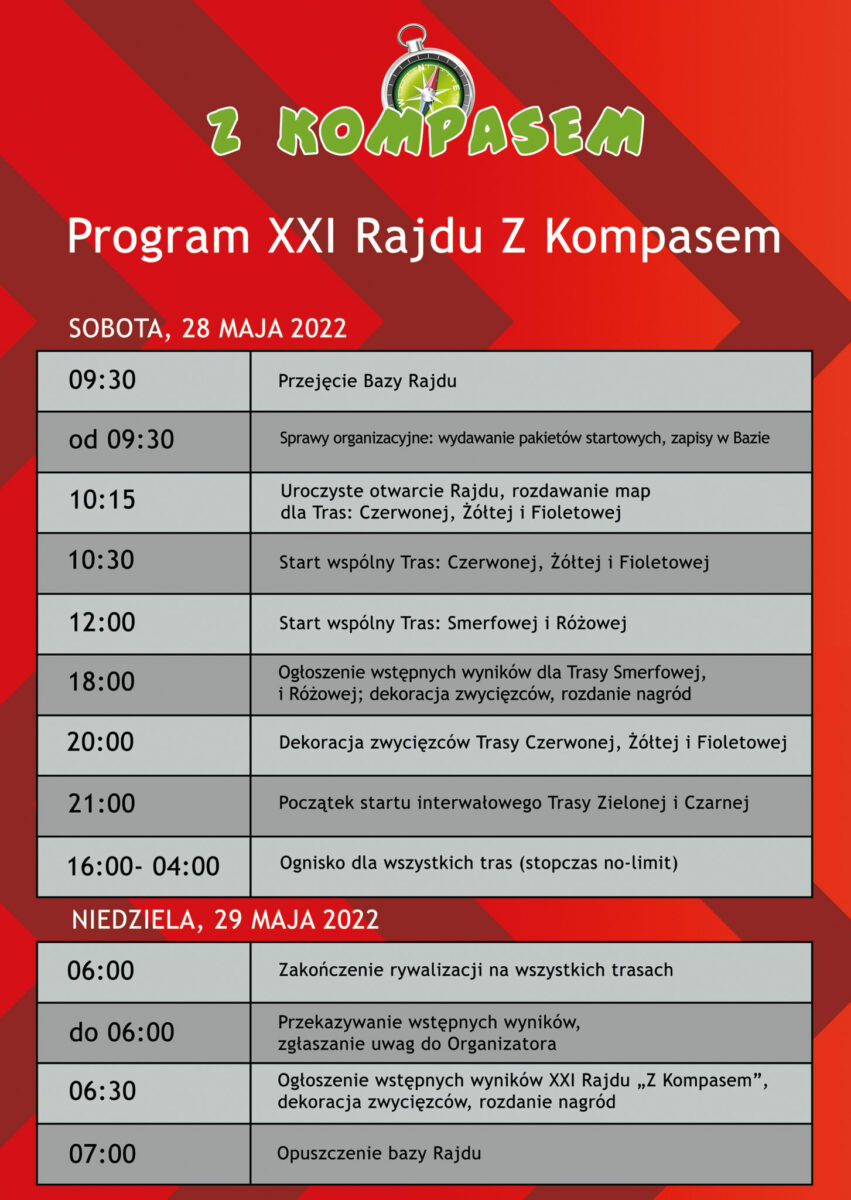 Na stronie internetowej organizatora: https://zkompasem.pl/xxi-rajd-z-kompasem/